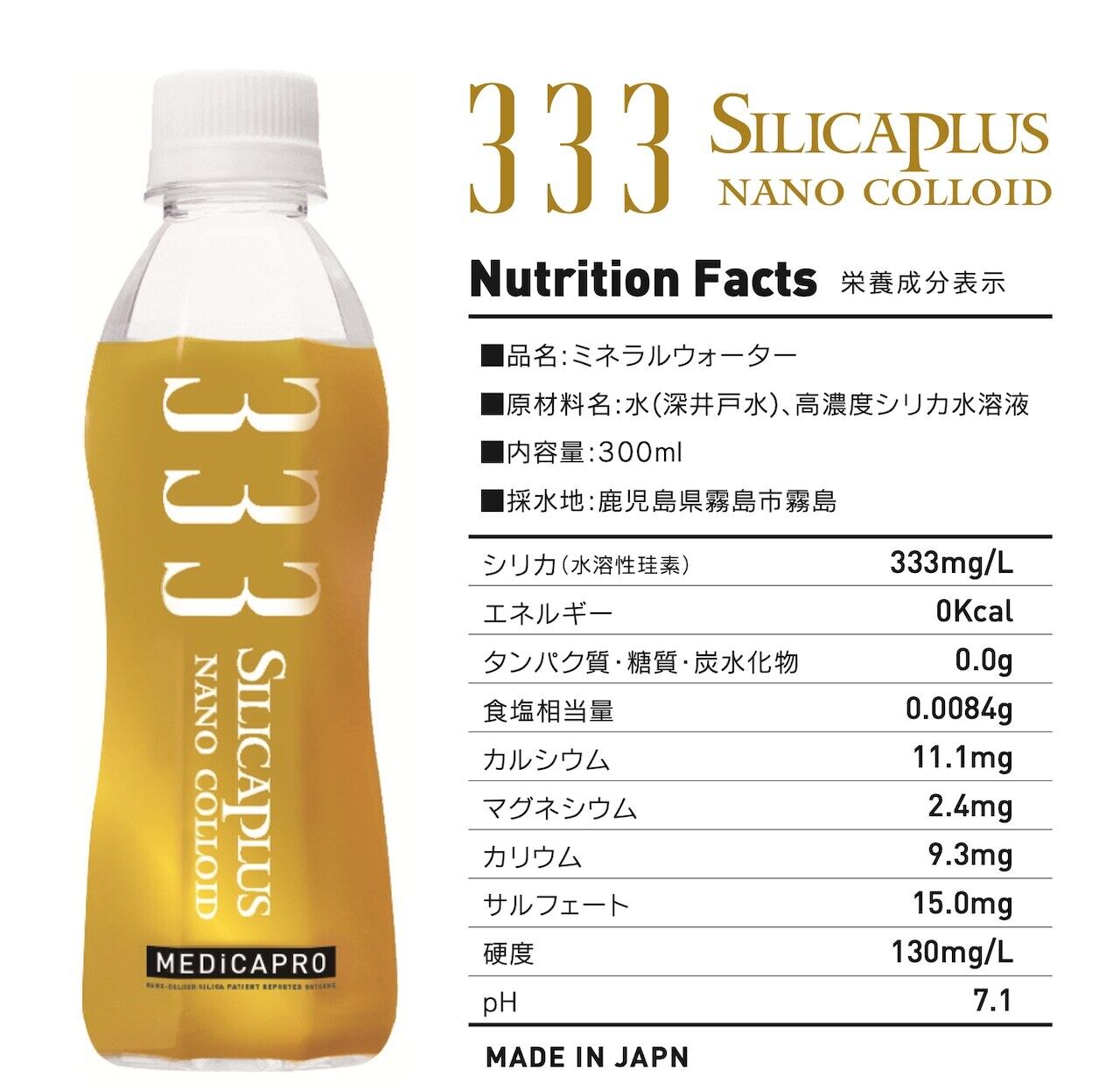 ナノコロイド化したシリカ333mlを含む「シリカ333」。