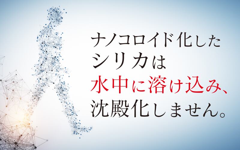 シリカは、ナノコロイド状になることで、はじめて体内へ有効に働くようになります。